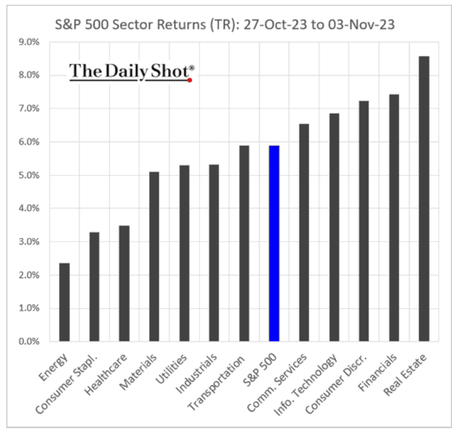 The S&P 500 (SP500) soared almost 6%, while tech soared over 7% and financials and real estate delivered even stronger returns.